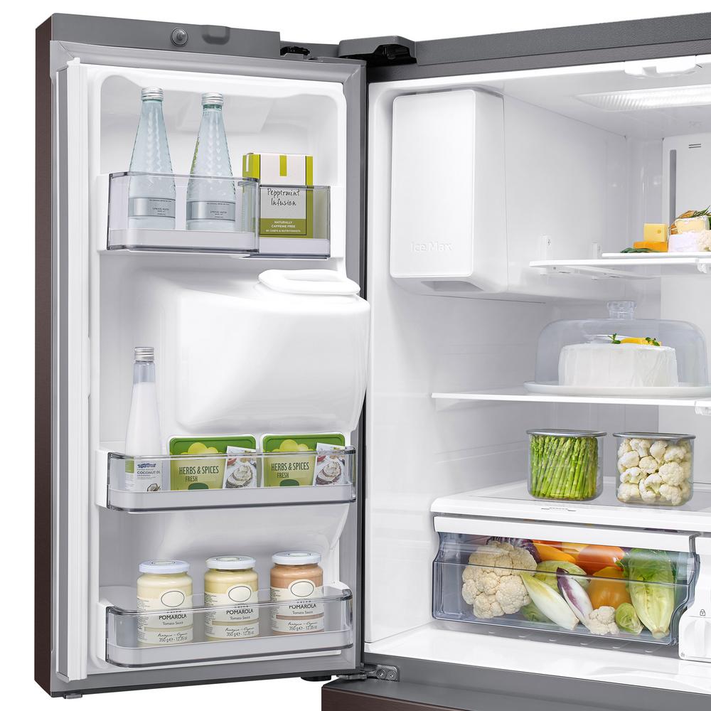 Samsung 28 Cu Ft 4 Door French Door Refrigerator In Fingerprint Resistant Tuscan Stainless Rf28r7201dt The Home Depot